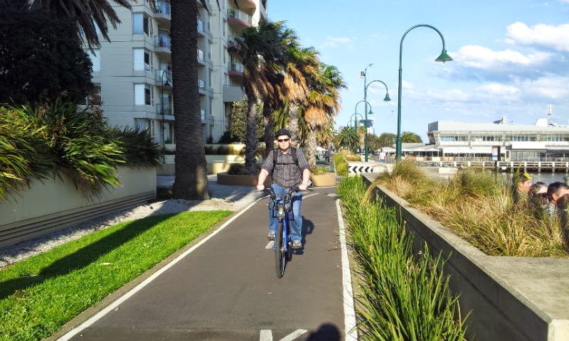 Dzis nam sie plany poranne rozjechaly kompletnie i w koncu po poludniu nieoczekiwanie znalezlismy sie na rowerach miejskich i to pedzac w strone morza i Portu w Melbourne.